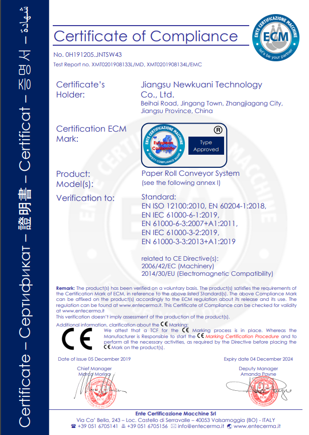 CE certification of base paper logistics system